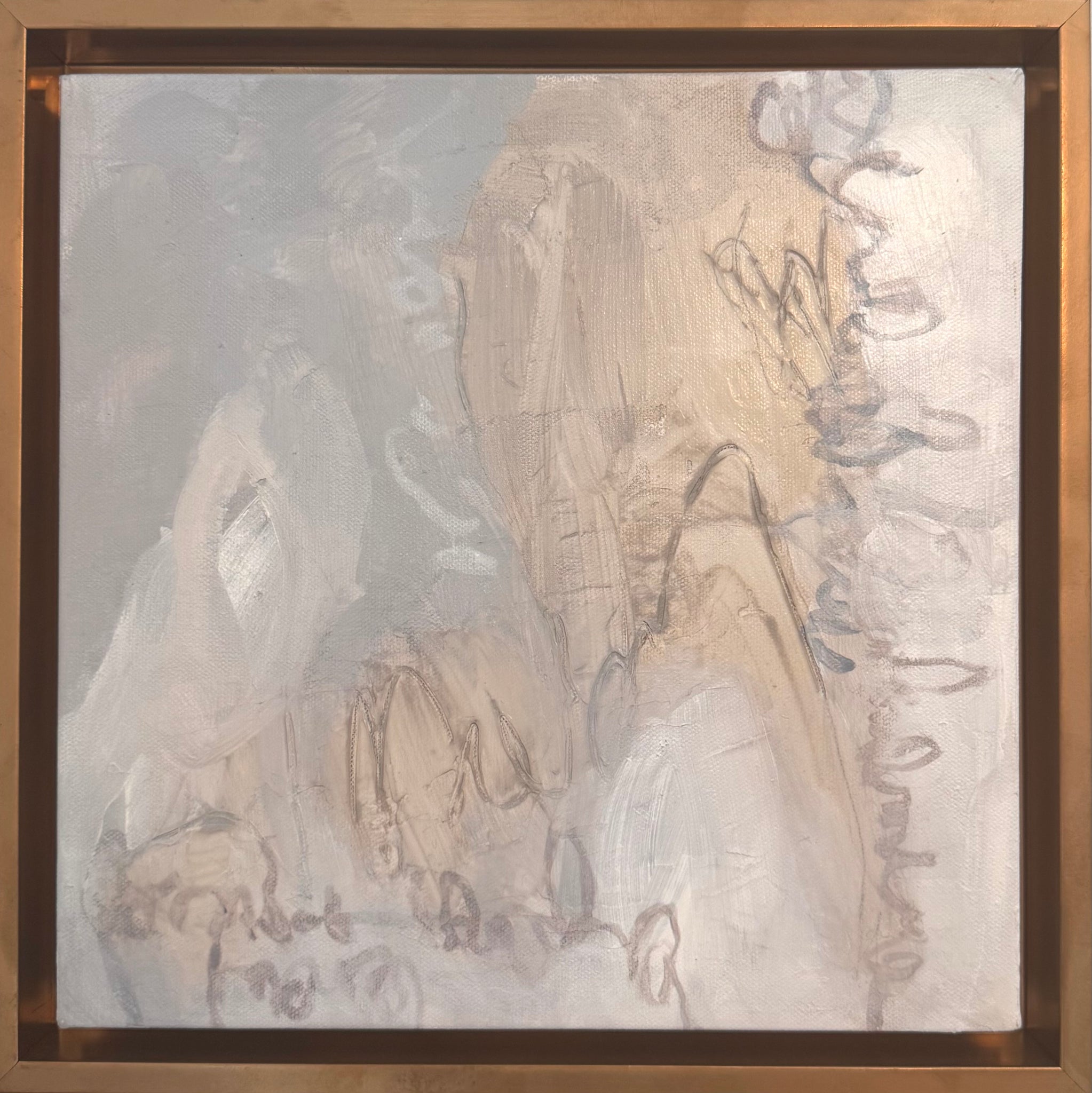 Mixed media original art on canvas. Framed in the floating aged gold frame.