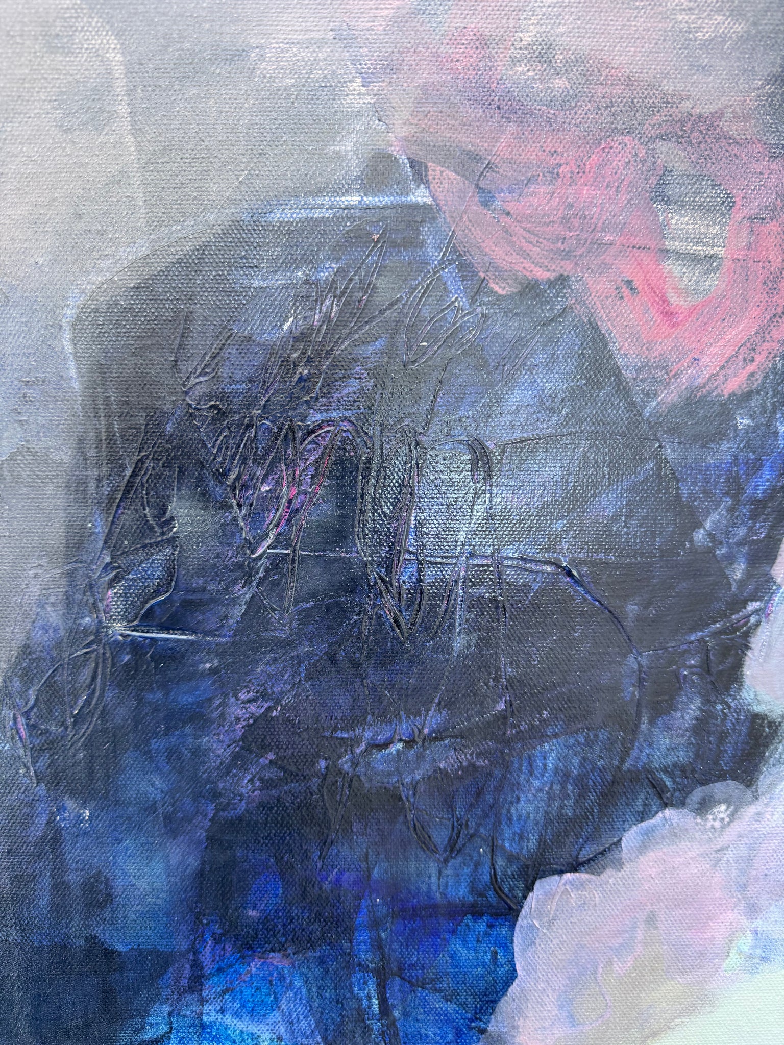Words of Love I is the first of a two-painting diptych-an intimate story told through color, texture, and concealed language. Layers of painted words rise to the surface in some places and softly disappear in others, like emotions we reveal and protect at the same time. Warm, colorful, and deeply emotional, this piece holds the quiet pulse of love-tender, complex, and beautifully human.